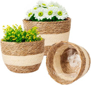 ADEPTNA 3pcs Wicker Plant Basket with Liner – 3 Sizes Seagrass Woven Natural Planter Baskets Home Decorative Plant Pot for Flowers Plants Trees Baskets for Indoor Outdoor Home Decoration